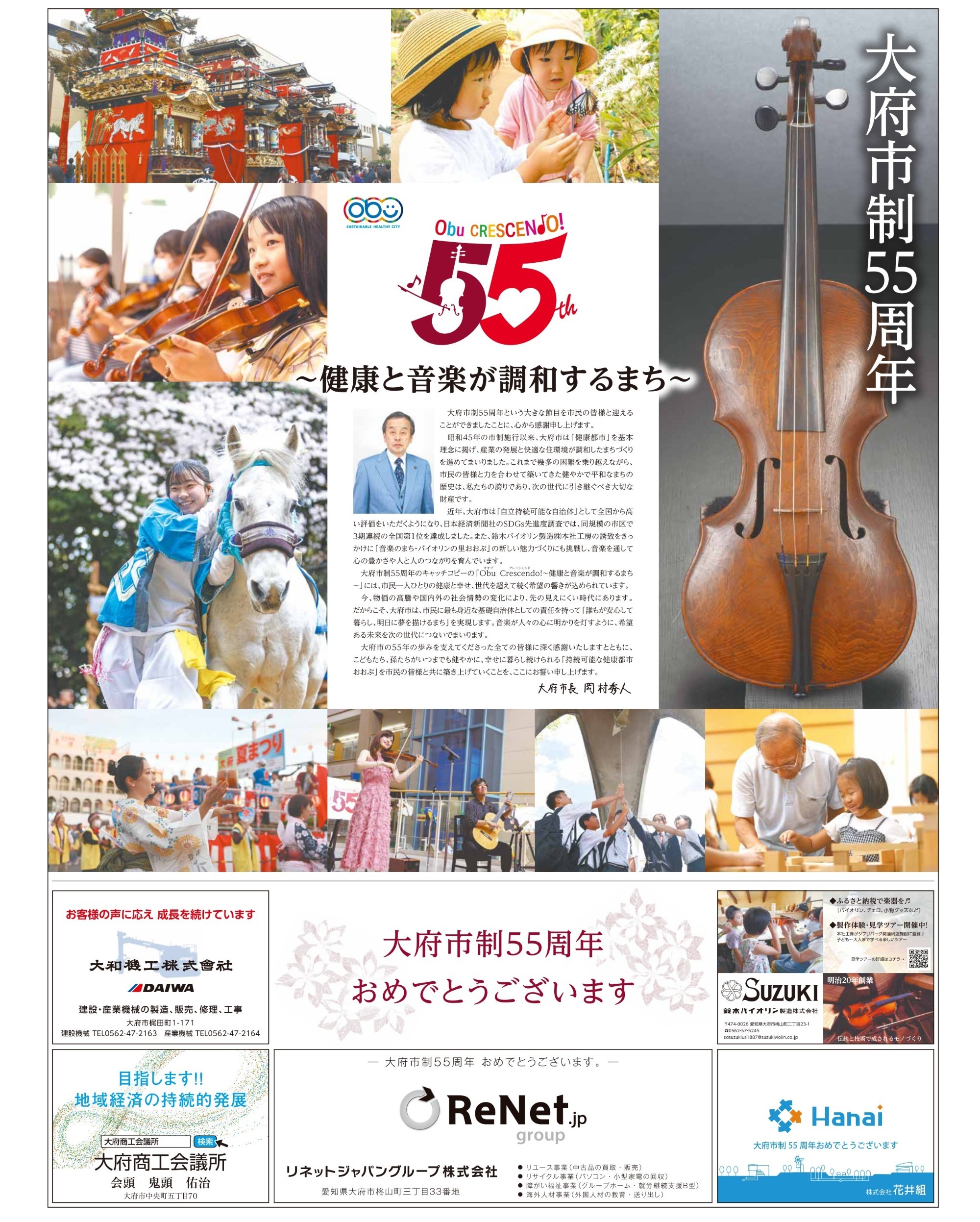 大府市制55周年を記念した9月5日の中日新聞に広告を掲載しました。